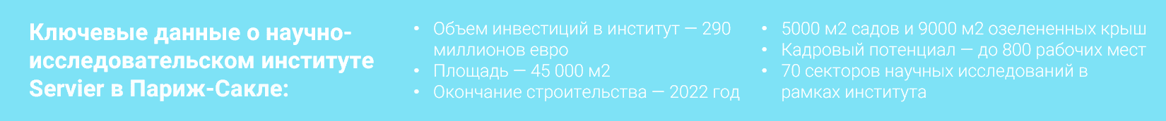 Независимая международная фармацевтическая компания Servier заложила первый камень в основание своего научно-исследовательского института, который будет расположен в кластере Париж-Сакле. Уже к 2022 году сюда планируется перенести всю исследовательскую деятельность Группы Сервье во Франции.